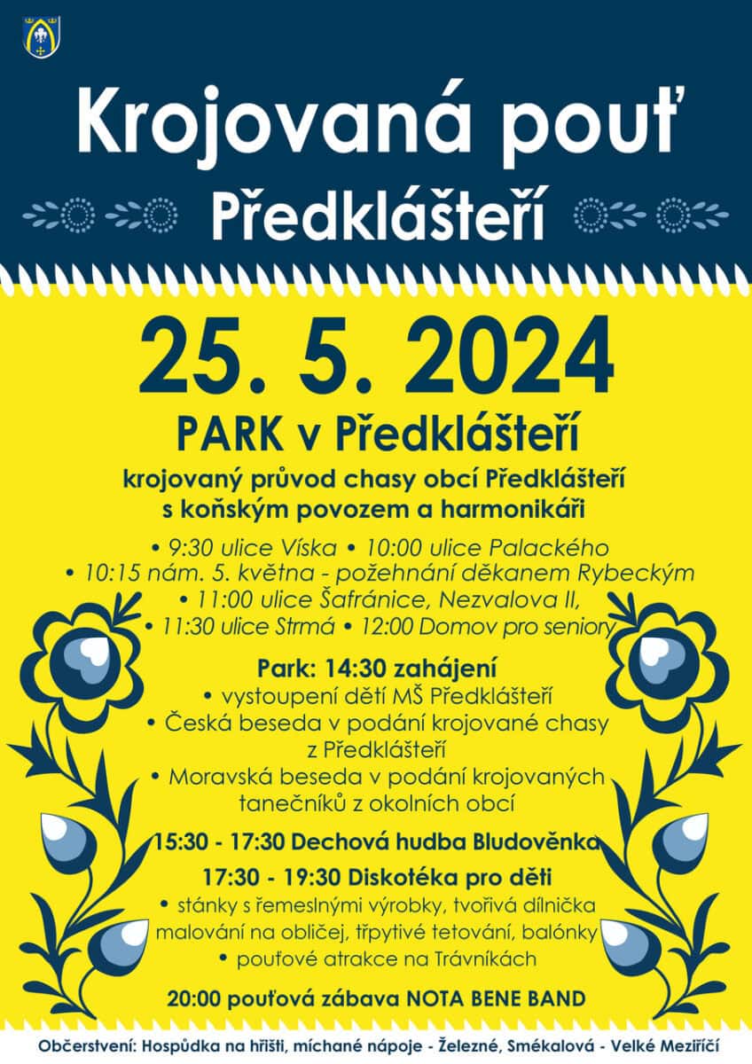 Krojovaná pouť v Předklášteří Datum: 25. 5. 2024Čas: 9:30 - 20:00Místo konání: PředklášteříKulturní akce