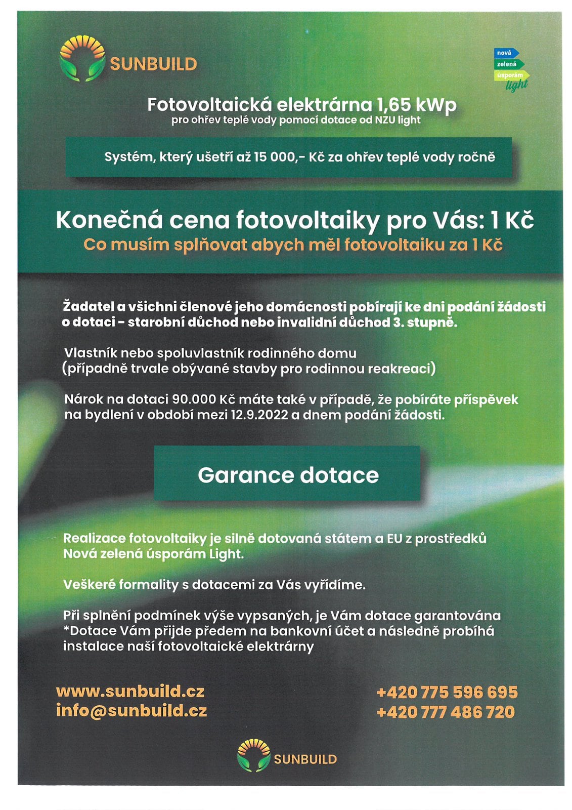 Solární fotovoltaický ohřev vody, Fotovoltaické elektrárny 1,6 – 2 kWp akumulace vody s pomocí dotace od NZU linght
